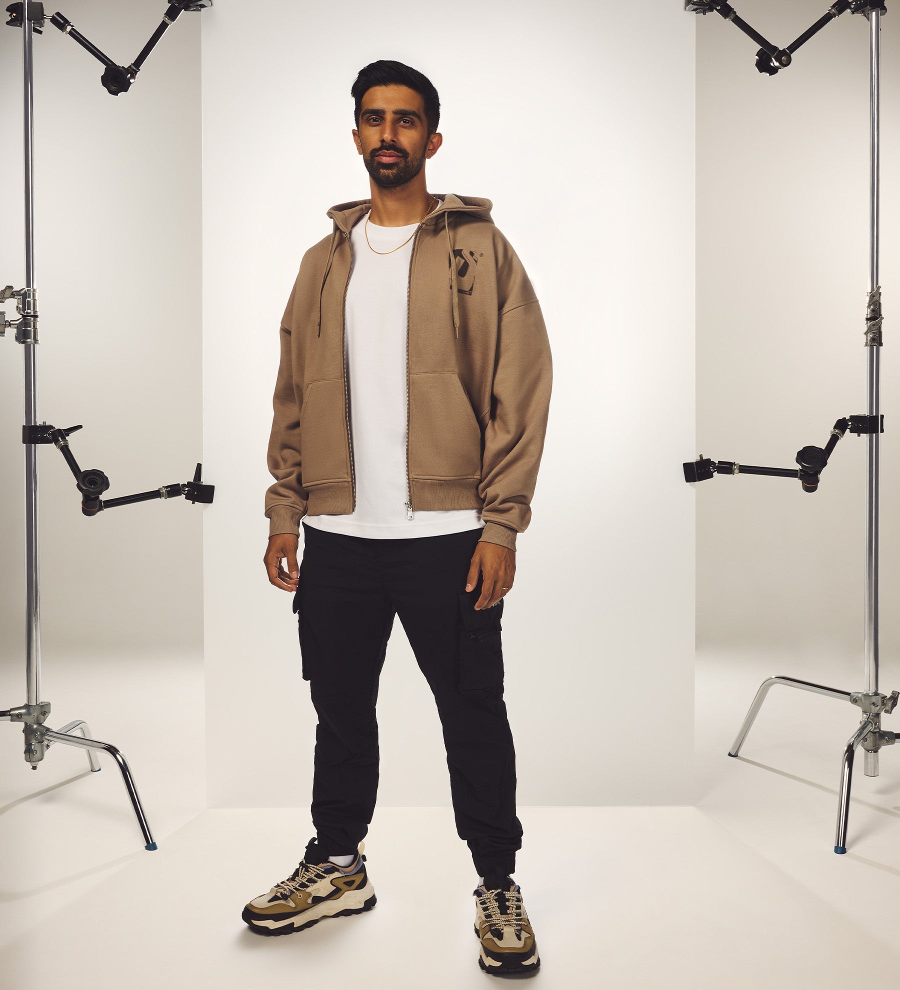 Initial Box Zip Hoodie [Fossil] - Sidemen Clothing: Studios ® Collection. Initial screen print design. Oversized, boxy fit with a drop shoulder. 80% Cotton / 20% Polyester - 440gsm. Shop the collection now!